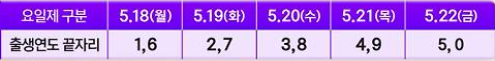 온라인과 오프라인 모두 첫 주에는 아래 표에 따라 해당 요일에만 신청이 가능합니다.