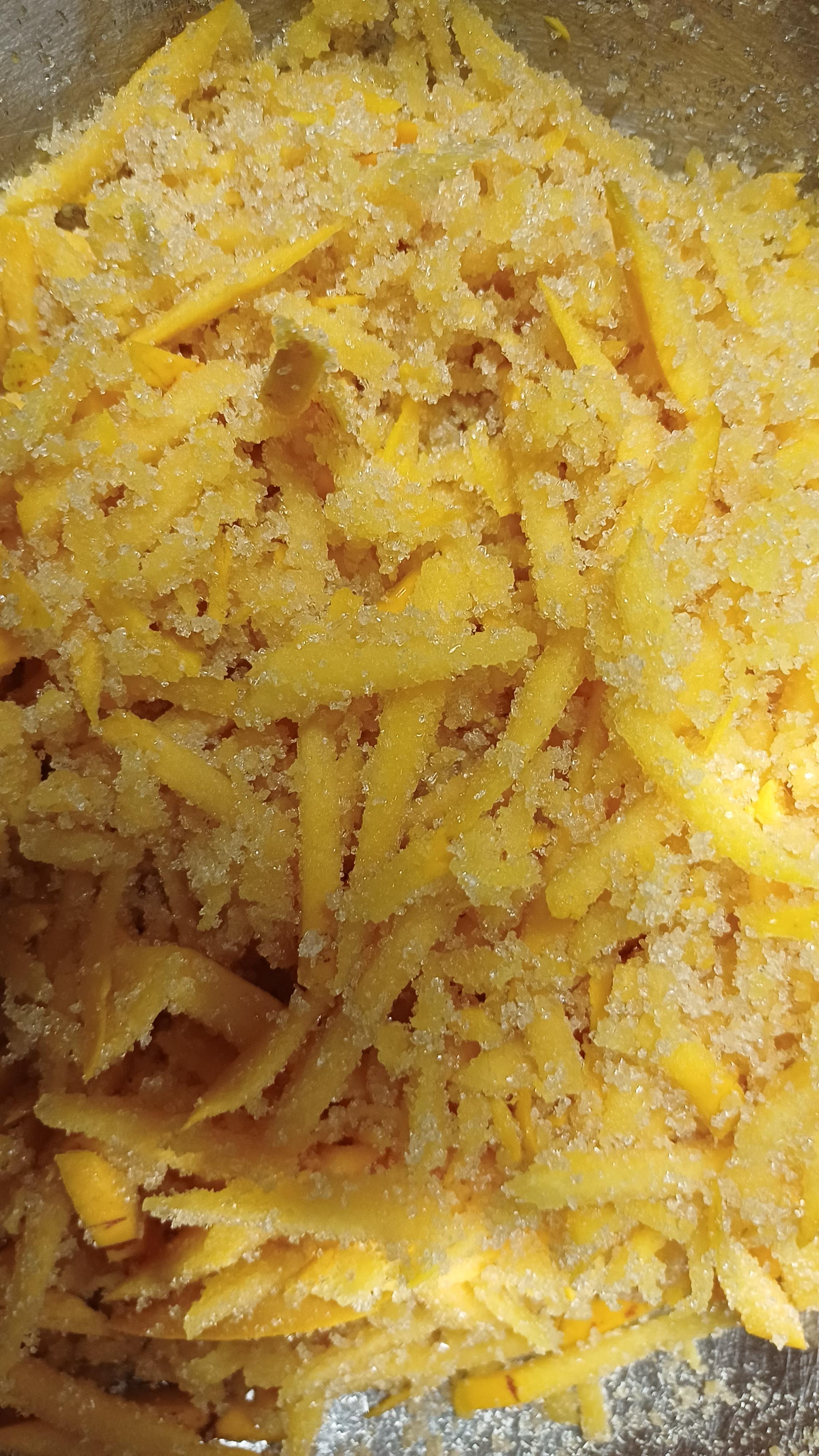 - 설탕 3분의 2를 모과와 먼저 버무립니다.