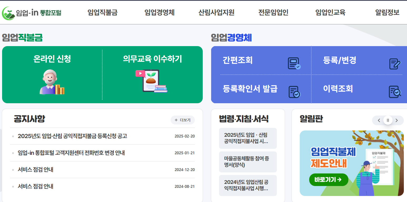 신청 방법에 대한 자세한 내용은 임업-in 통합포털에서 확인할 수 있습니다.
