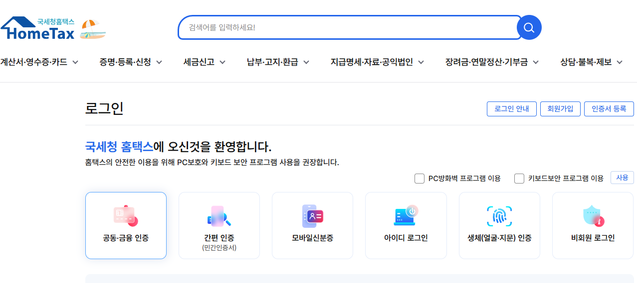 - 홈택스/손택스 로그인